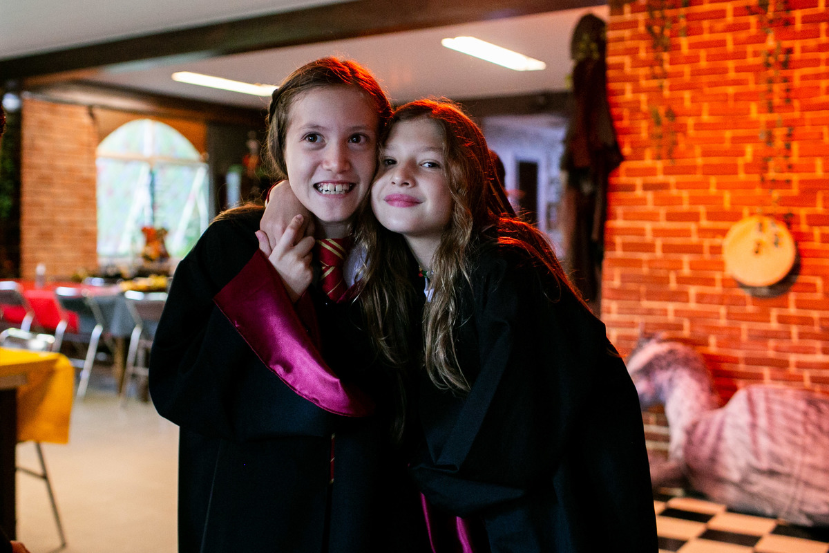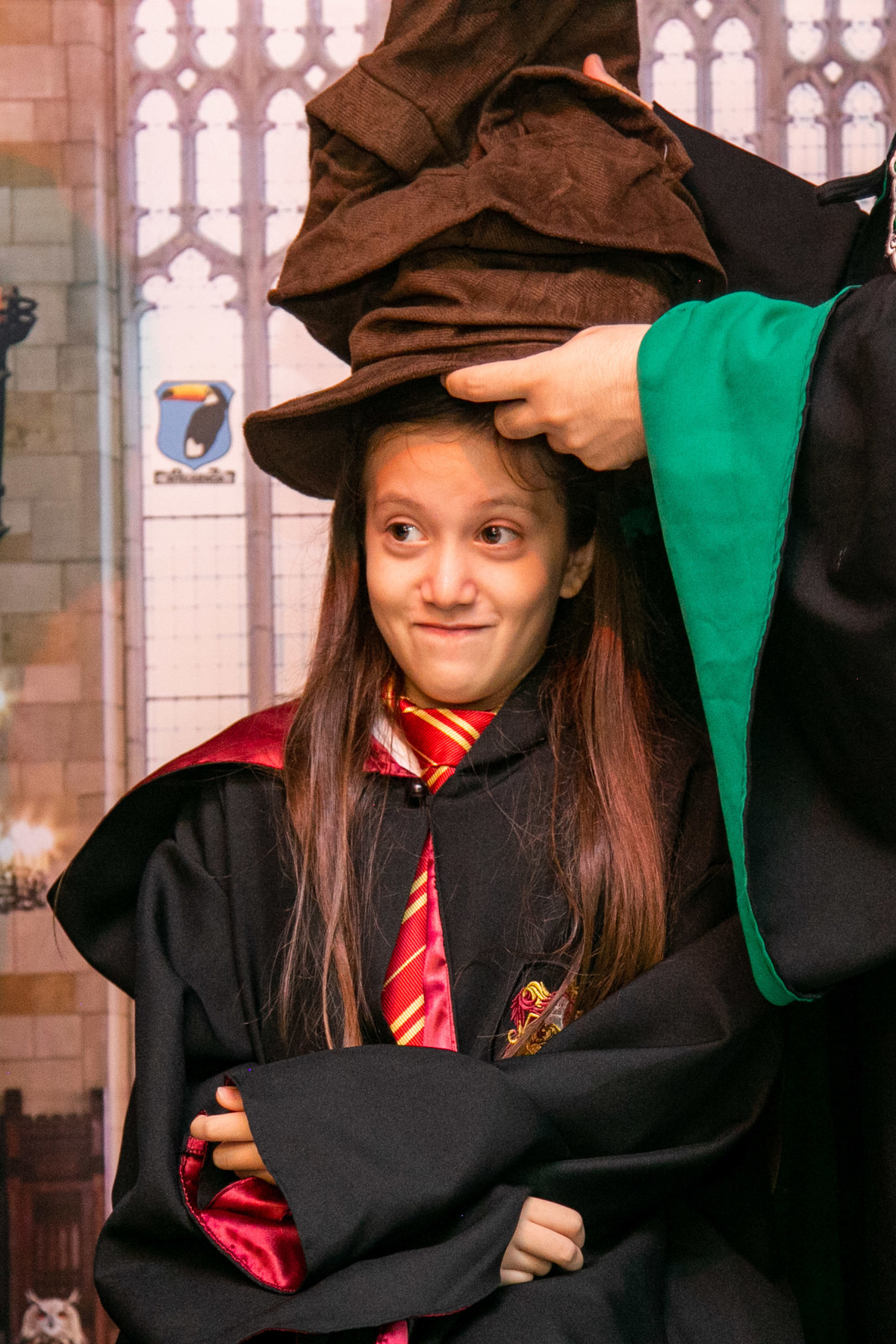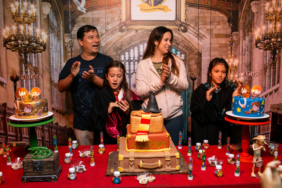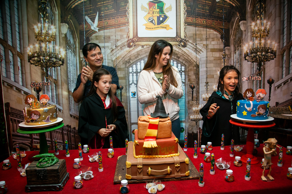 A festa da Clarice e da Betina, foi sem dúvida muito especial. Pra quem gosta do mundo de Hogwarts, imagina comemorar com um dia na escola de bruxos, com aulas de poções, quadribol, trato dos animais... Não tem como não se encantar!