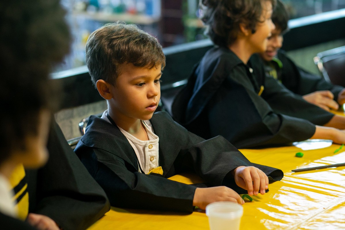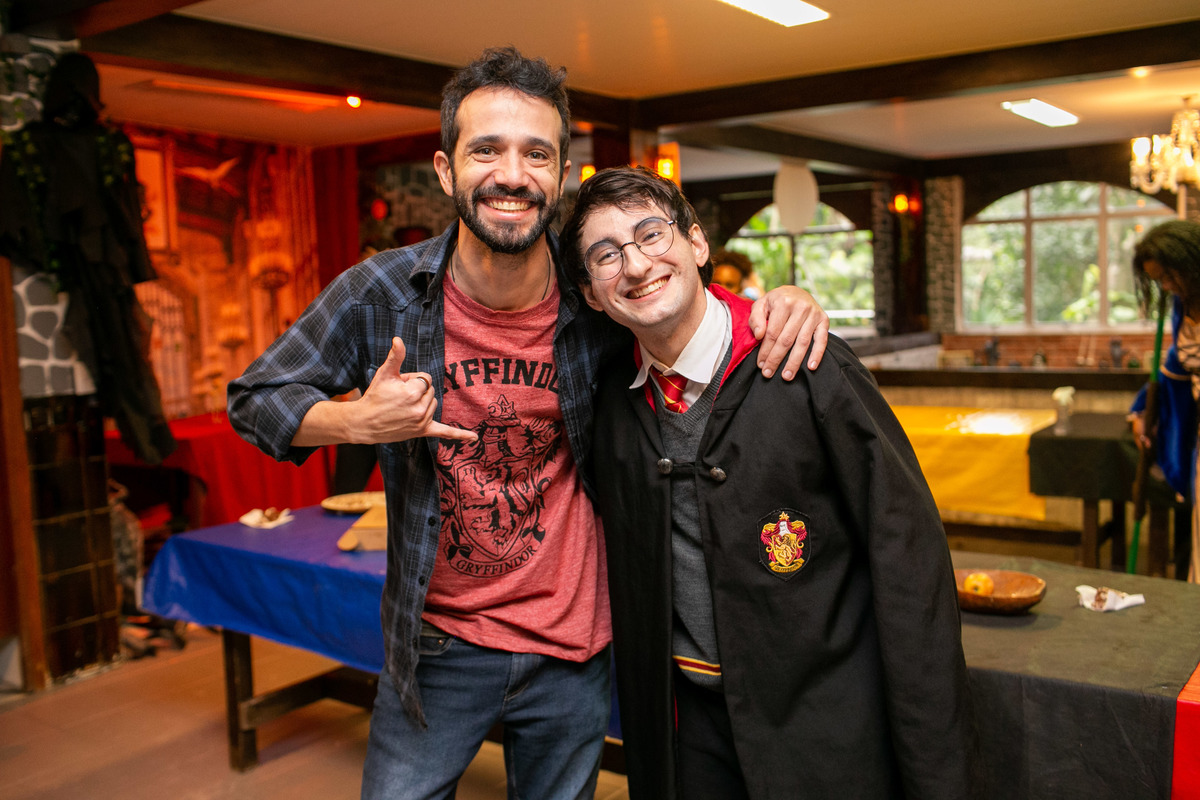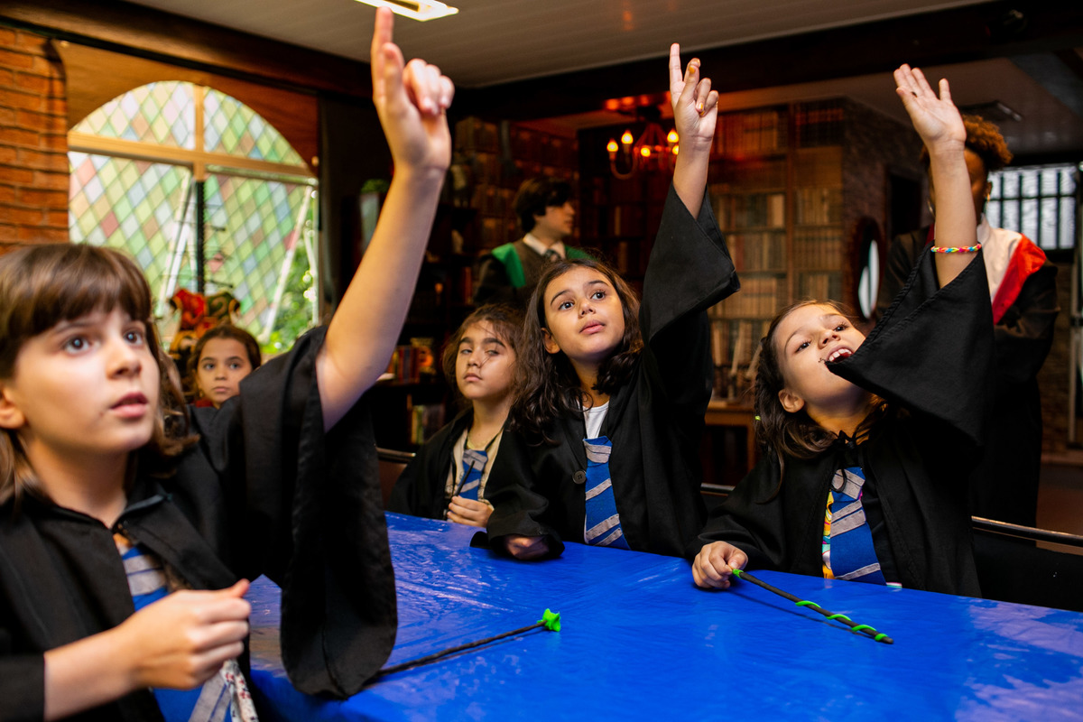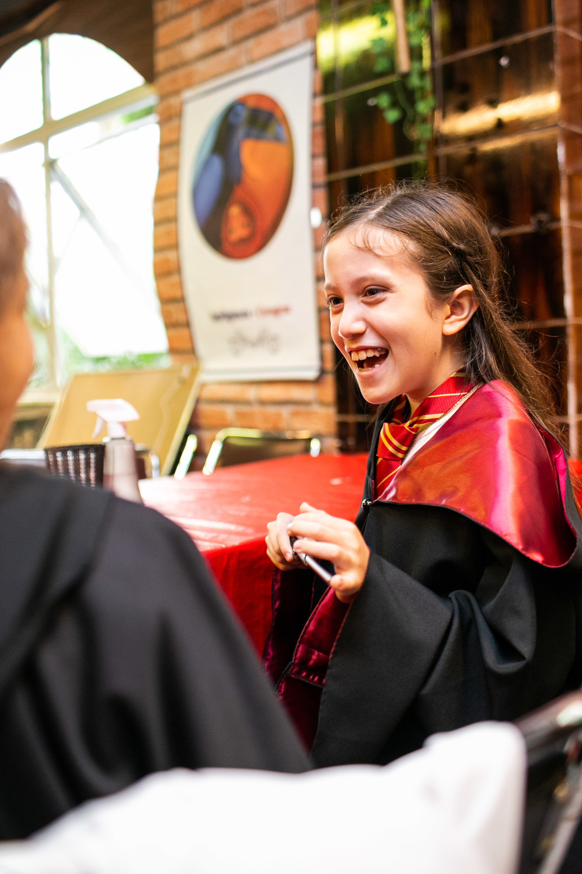 A festa da Clarice e da Betina, foi sem dúvida muito especial. Pra quem gosta do mundo de Hogwarts, imagina comemorar com um dia na escola de bruxos, com aulas de poções, quadribol, trato dos animais... Não tem como não se encantar!