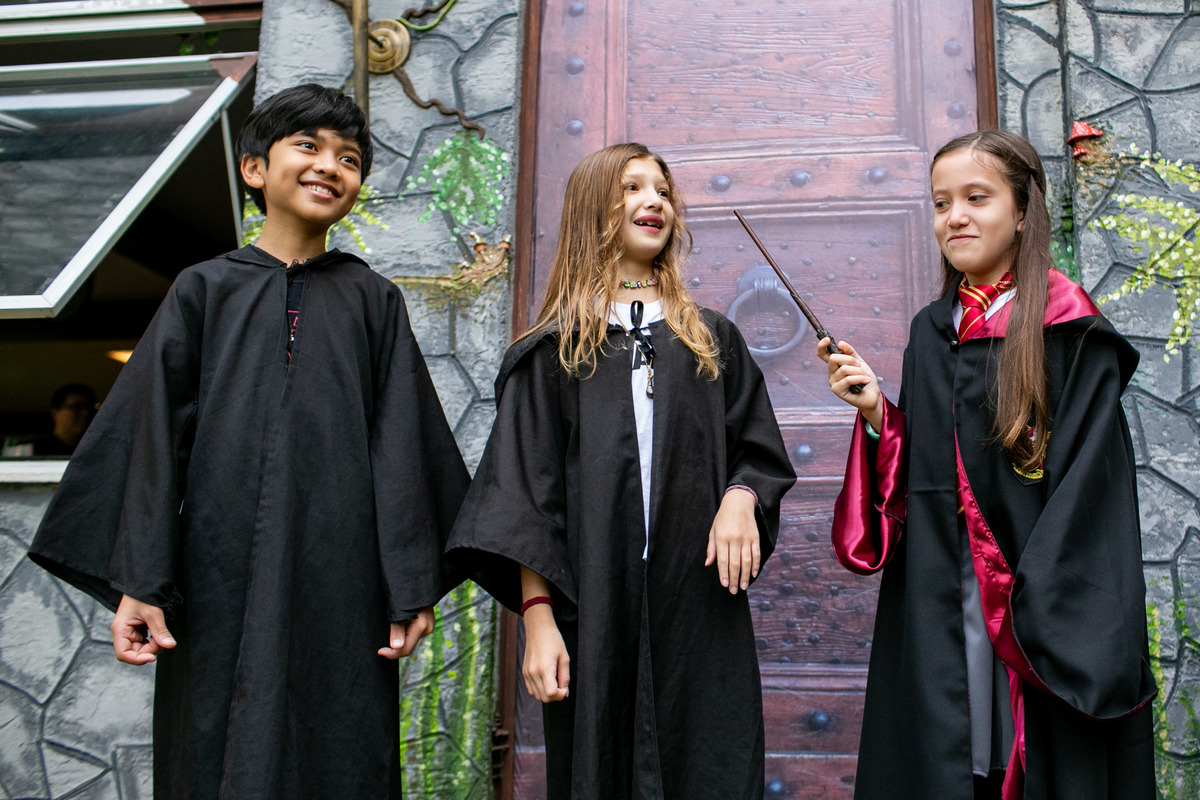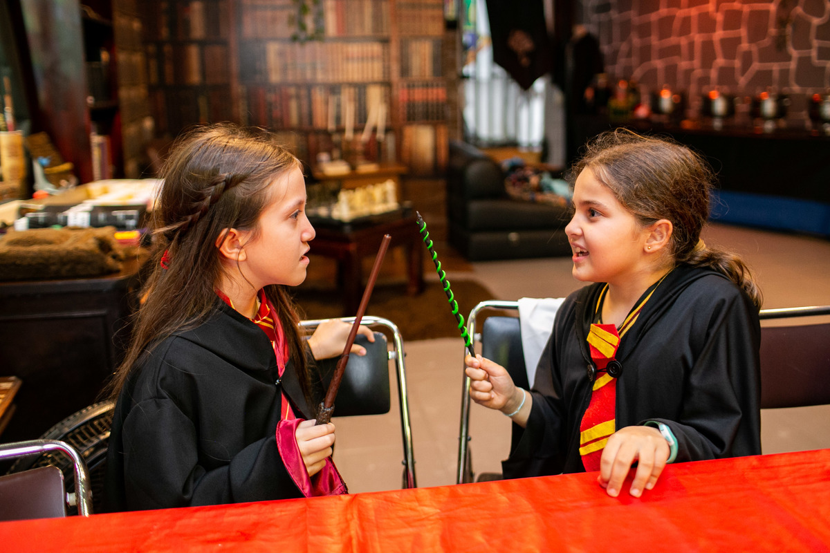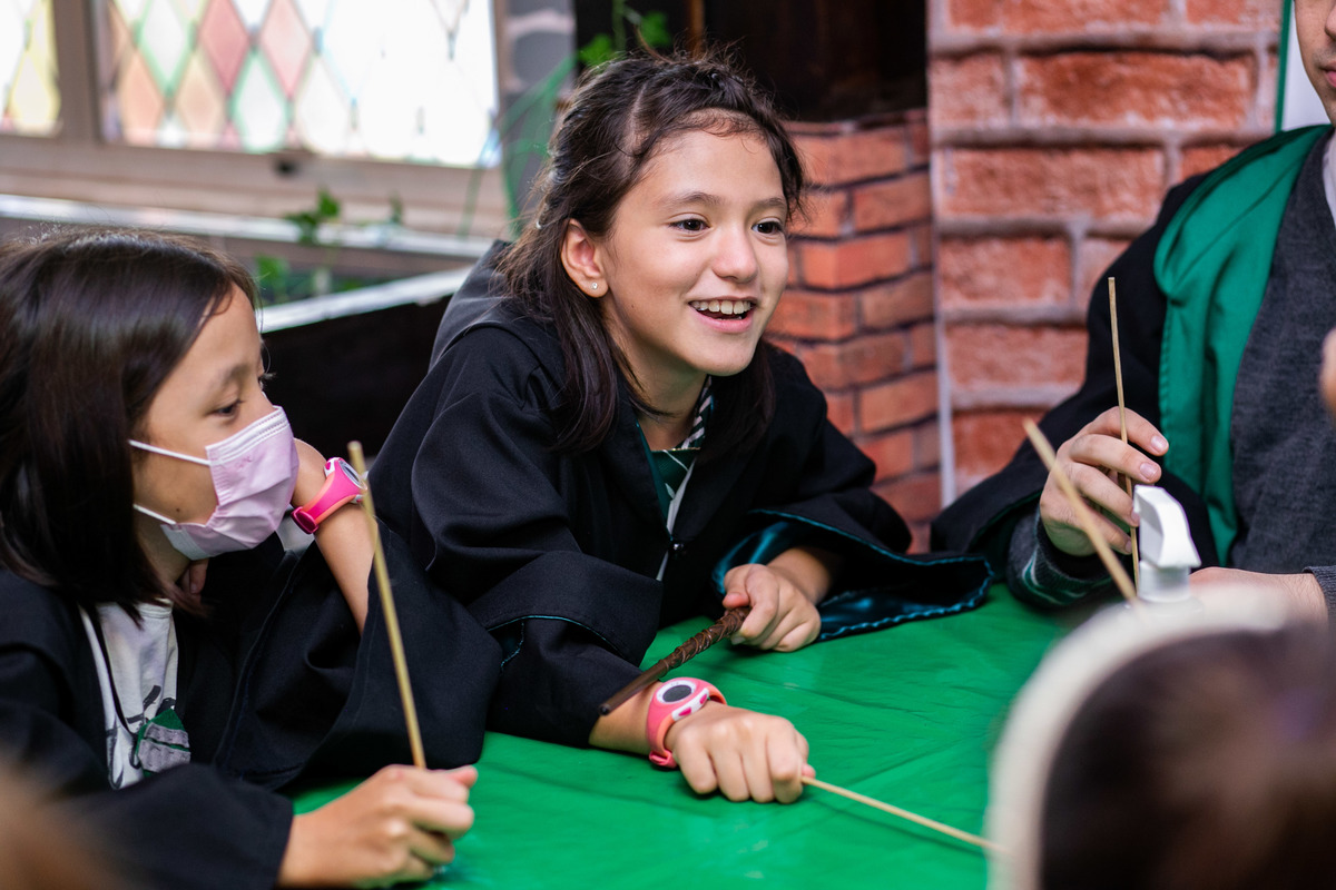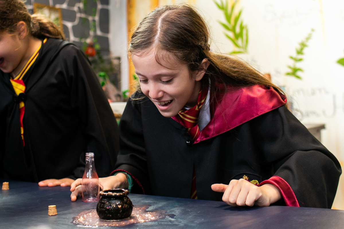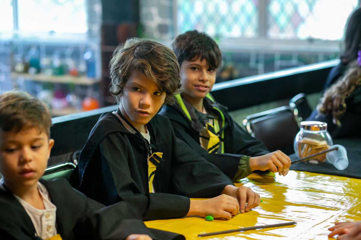A festa da Clarice e da Betina, foi sem dúvida muito especial. Pra quem gosta do mundo de Hogwarts, imagina comemorar com um dia na escola de bruxos, com aulas de poções, quadribol, trato dos animais... Não tem como não se encantar!