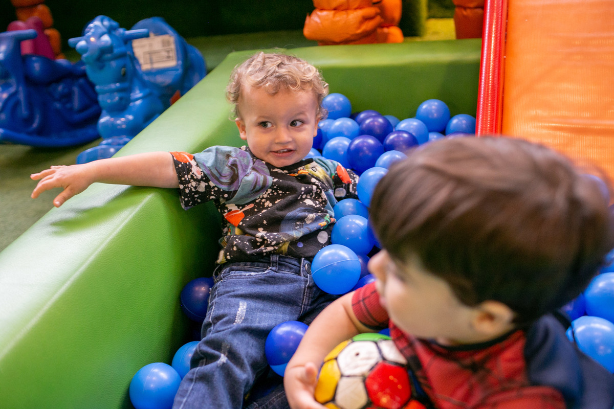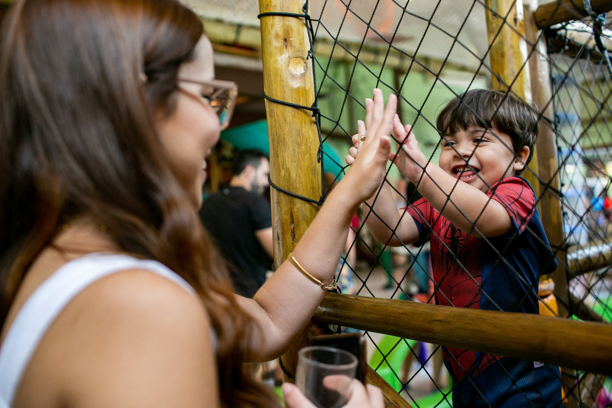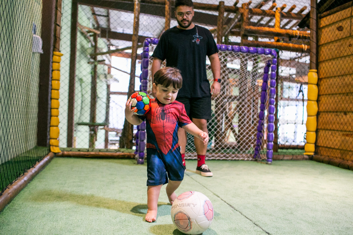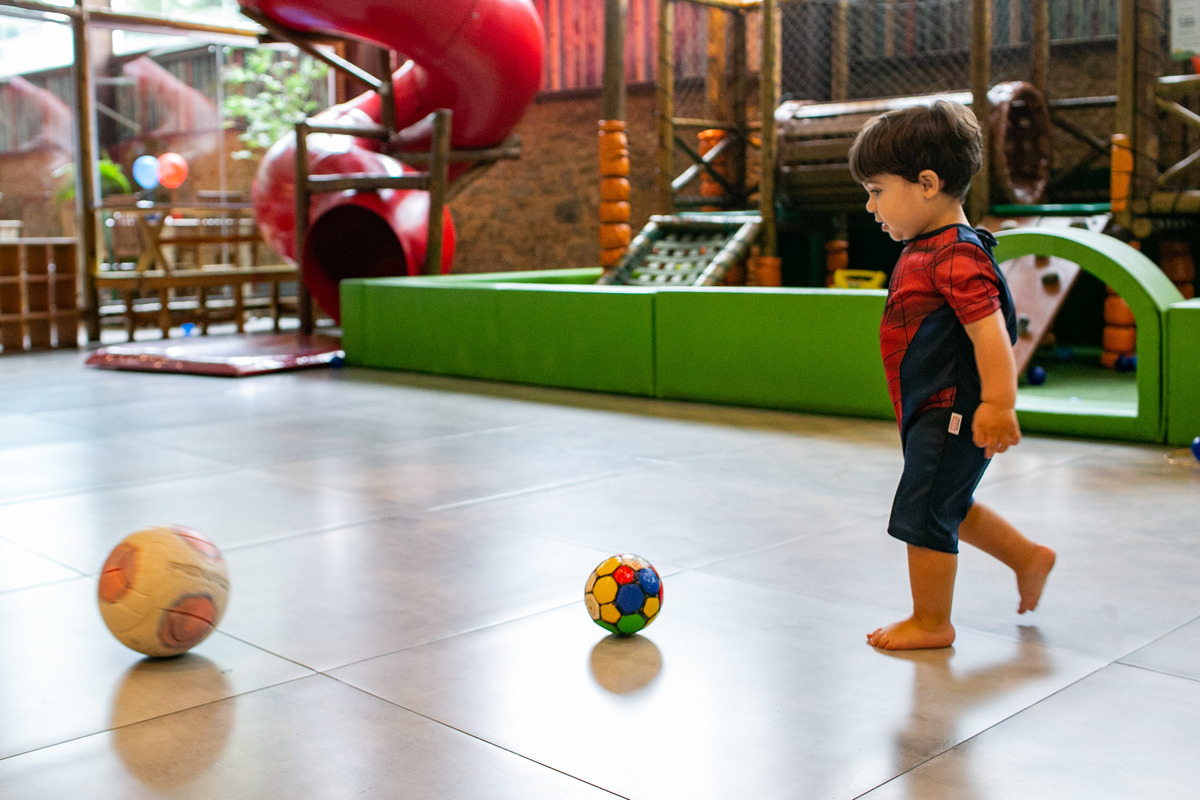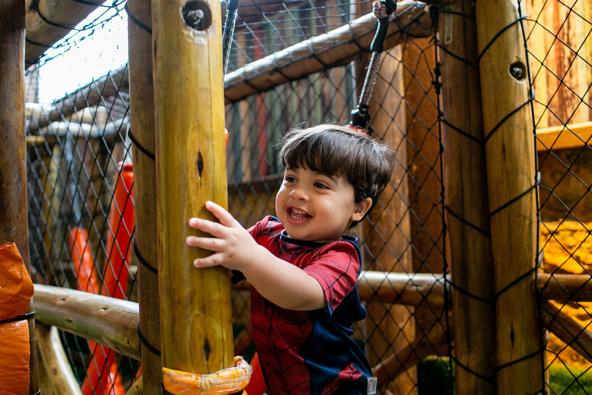 Quando cheguei a festa, Joaquim estava eufórico, correndo de um brinquedo para outro, até descobrir tudo o que havia ali na Casa Eco para brincar.