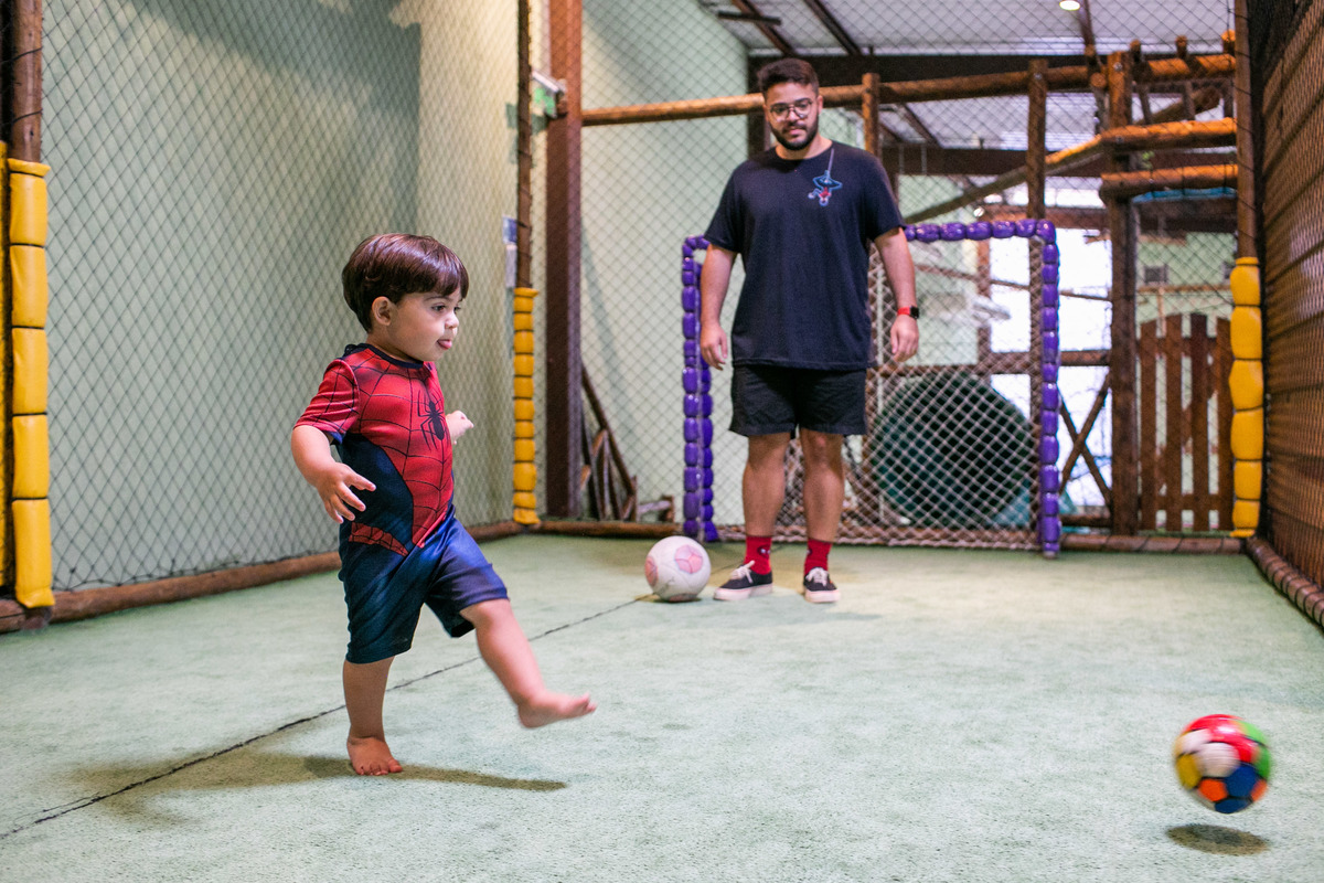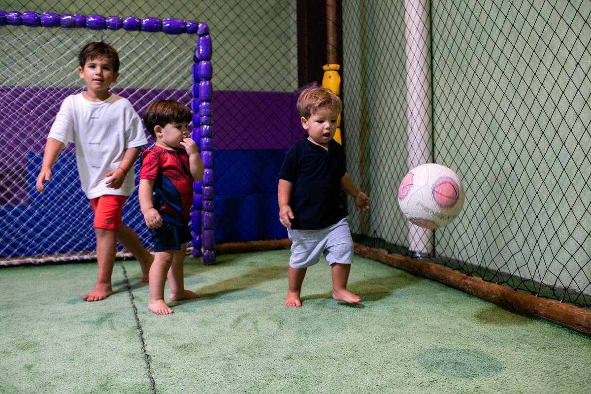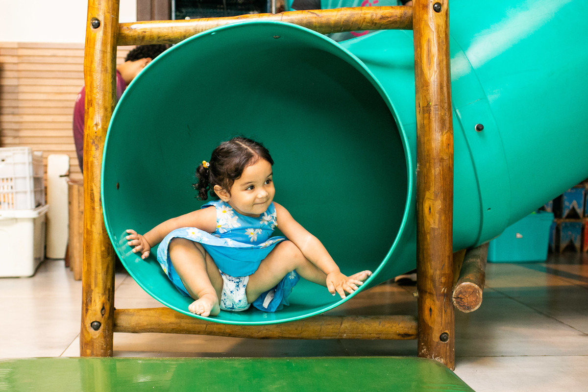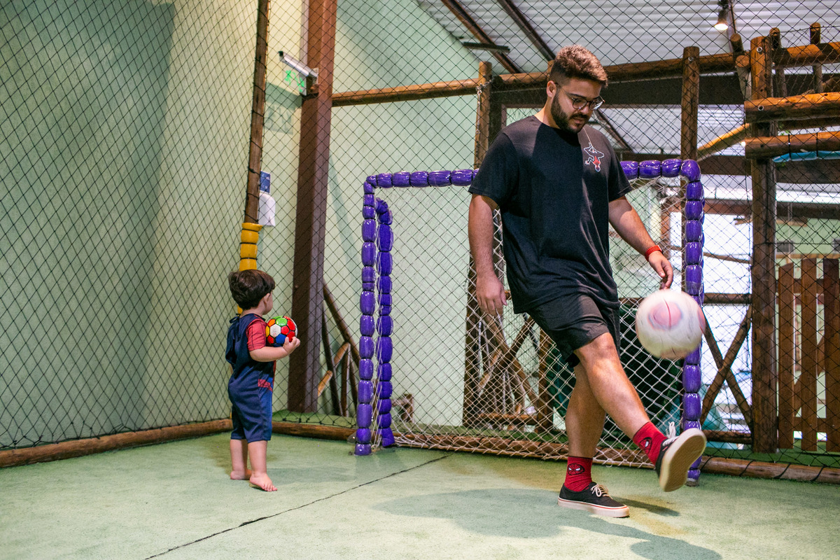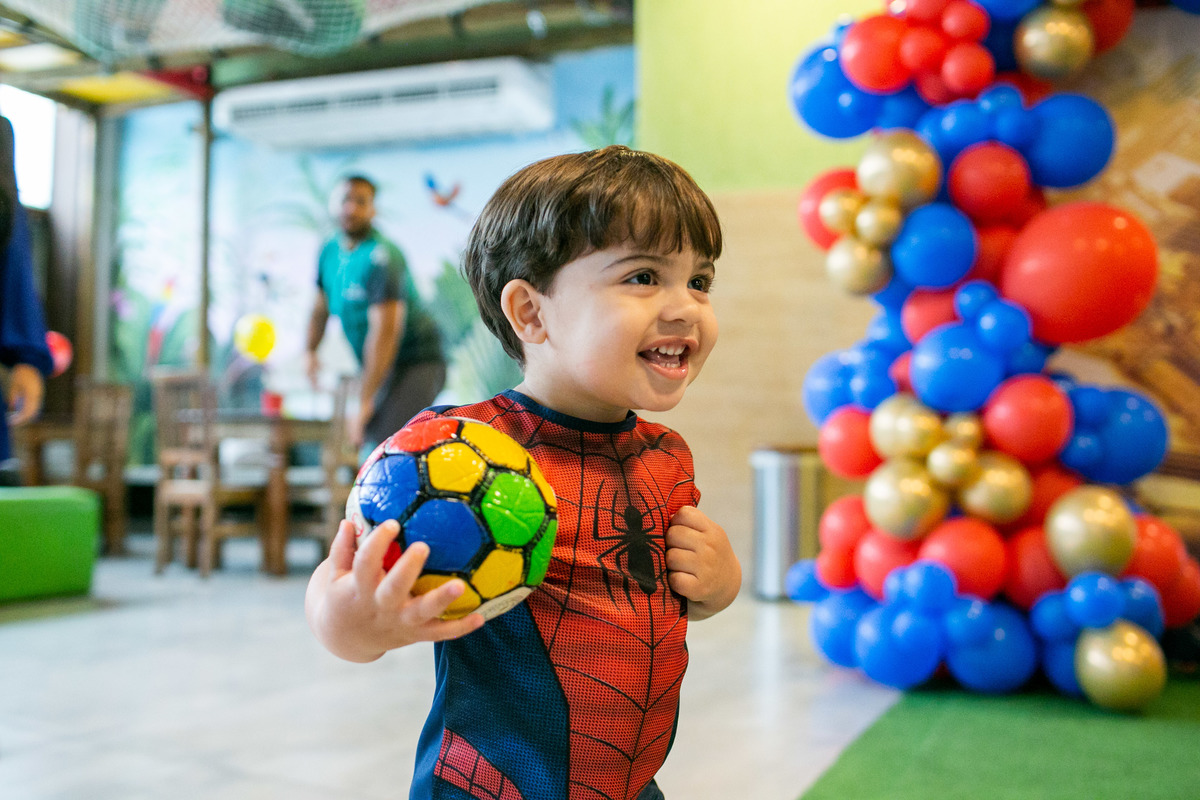 Quando cheguei a festa, Joaquim estava eufórico, correndo de um brinquedo para outro, até descobrir tudo o que havia ali na Casa Eco para brincar.