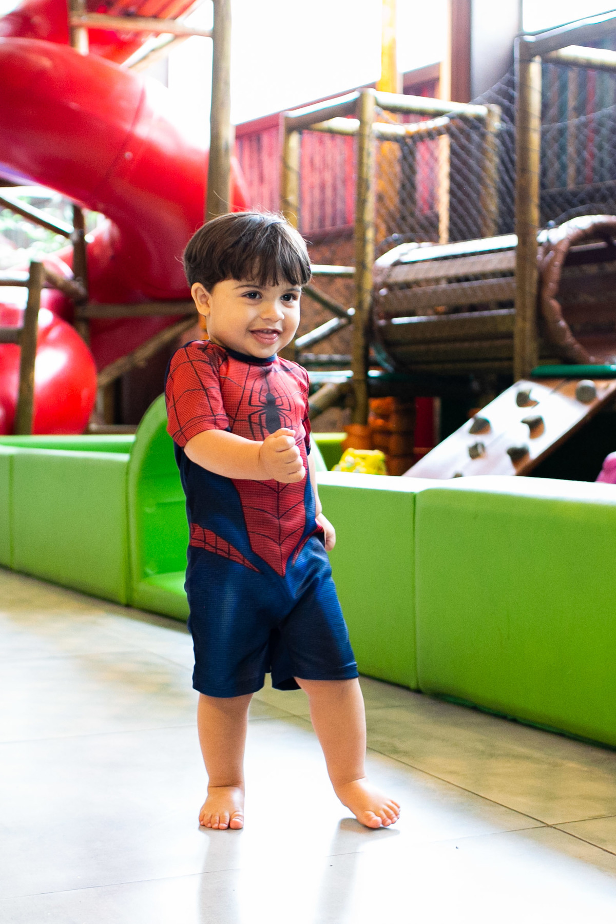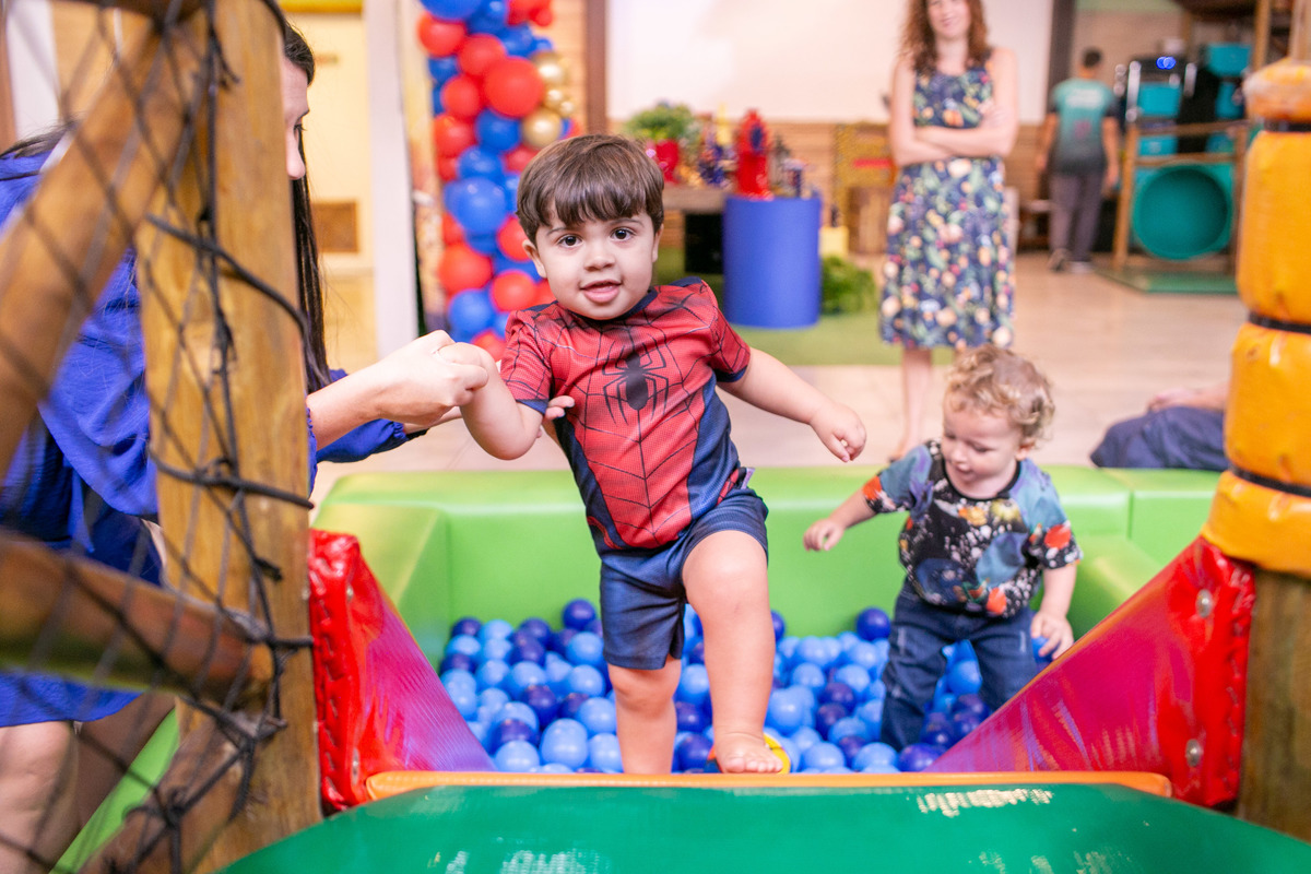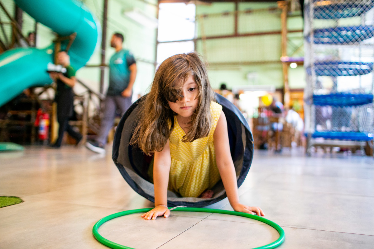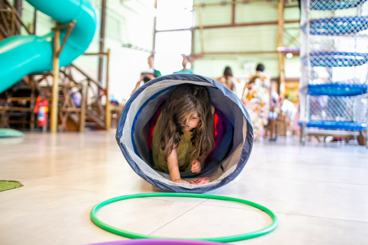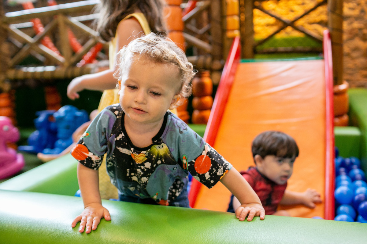 Quando cheguei a festa, Joaquim estava eufórico, correndo de um brinquedo para outro, até descobrir tudo o que havia ali na Casa Eco para brincar.