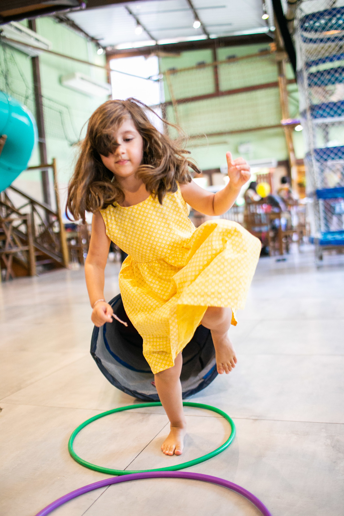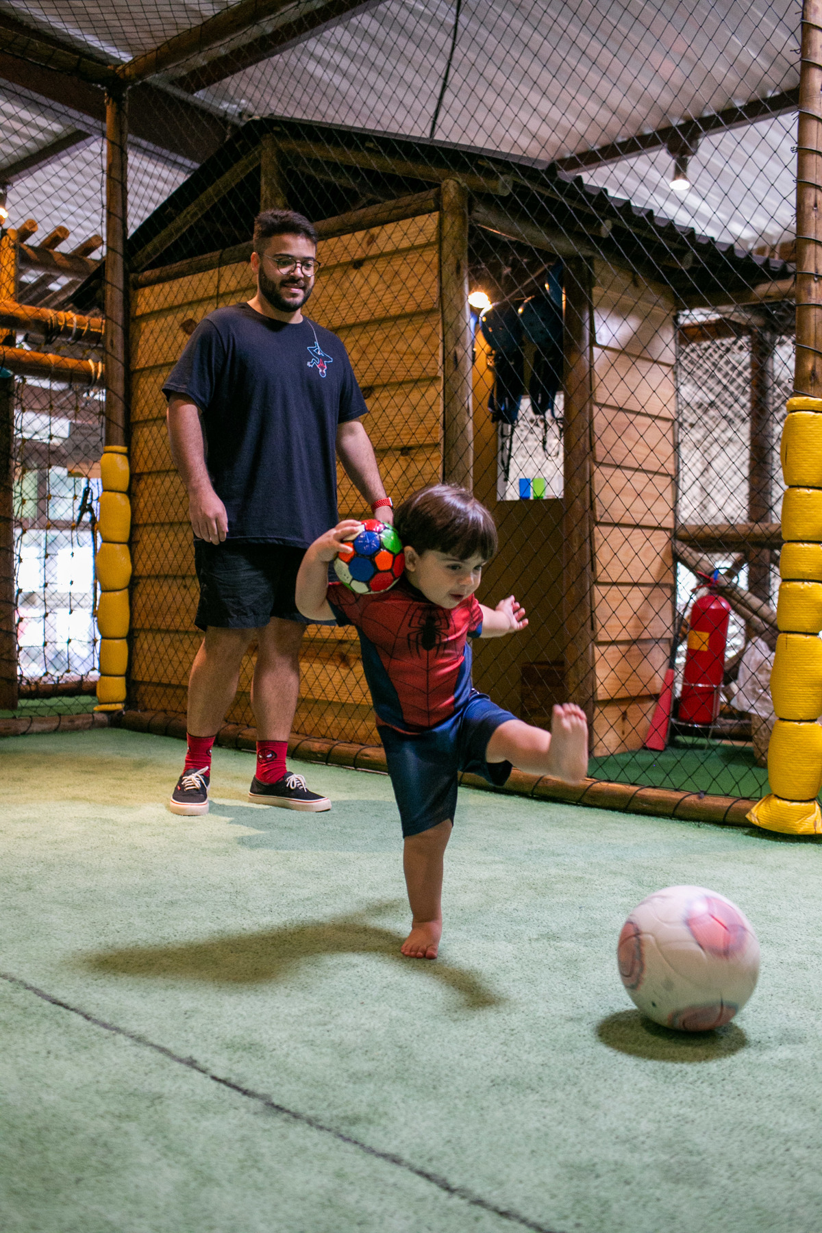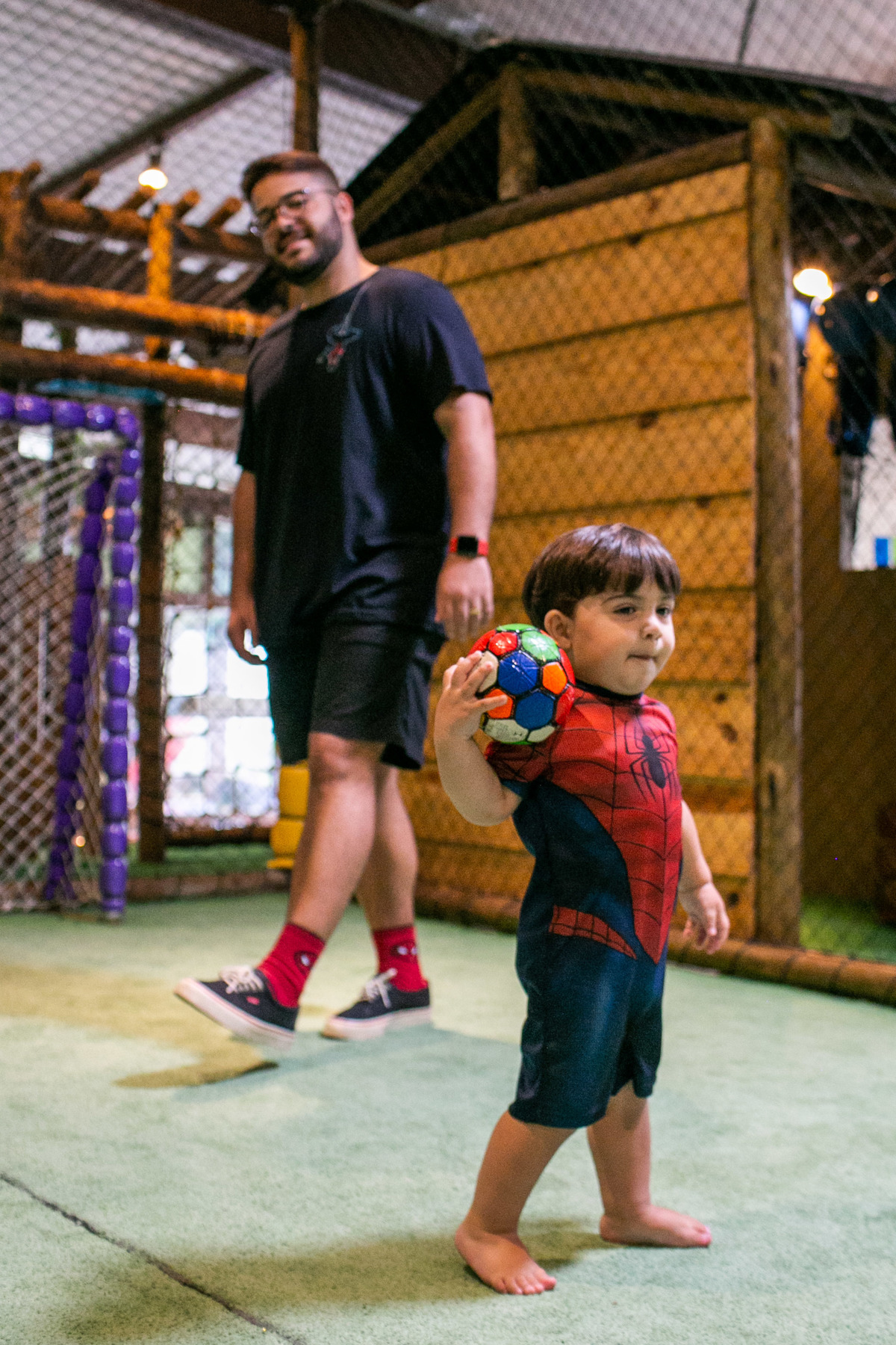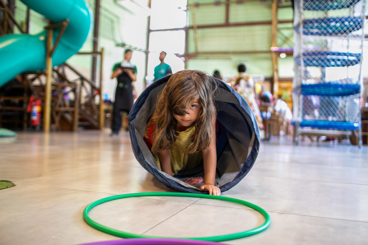 Quando cheguei a festa, Joaquim estava eufórico, correndo de um brinquedo para outro, até descobrir tudo o que havia ali na Casa Eco para brincar.