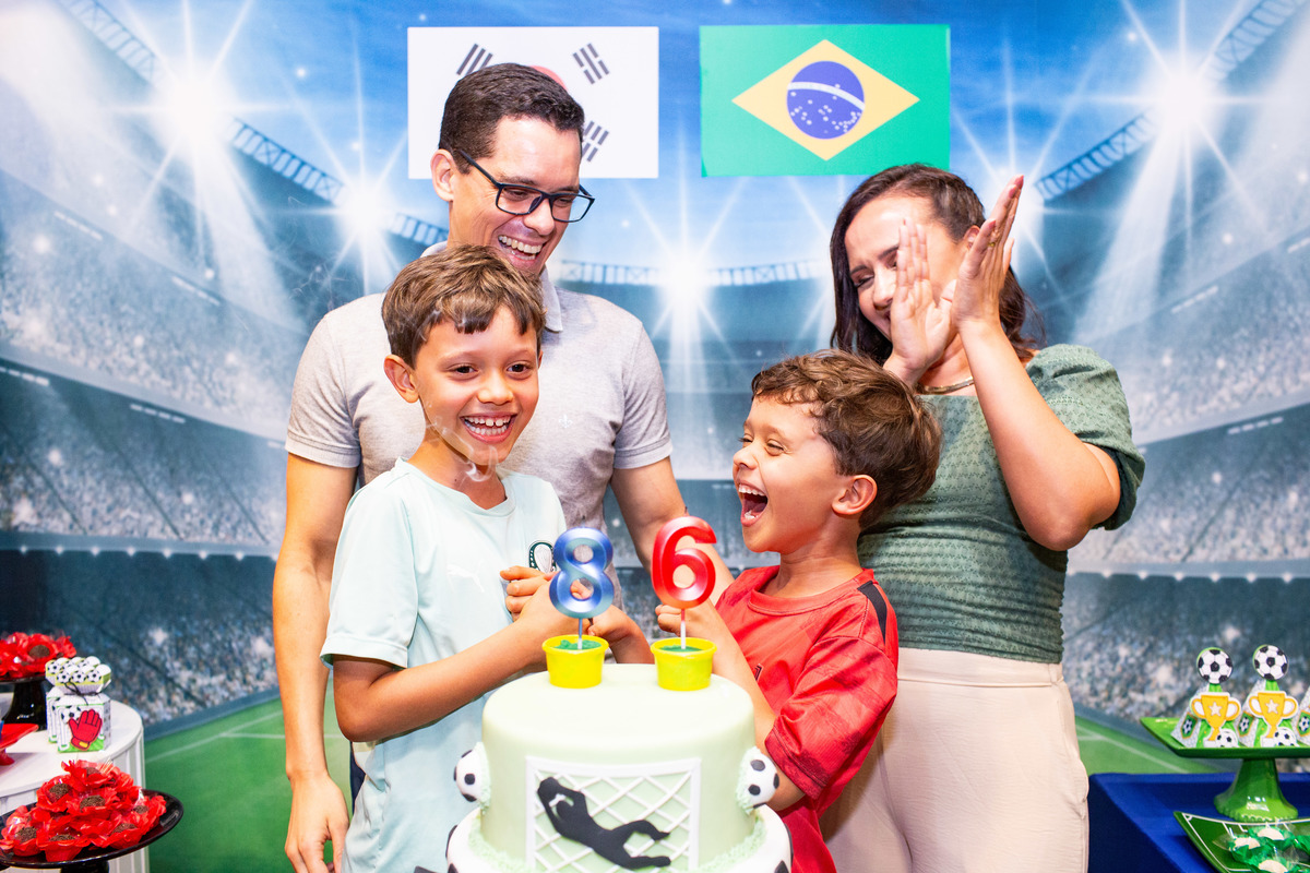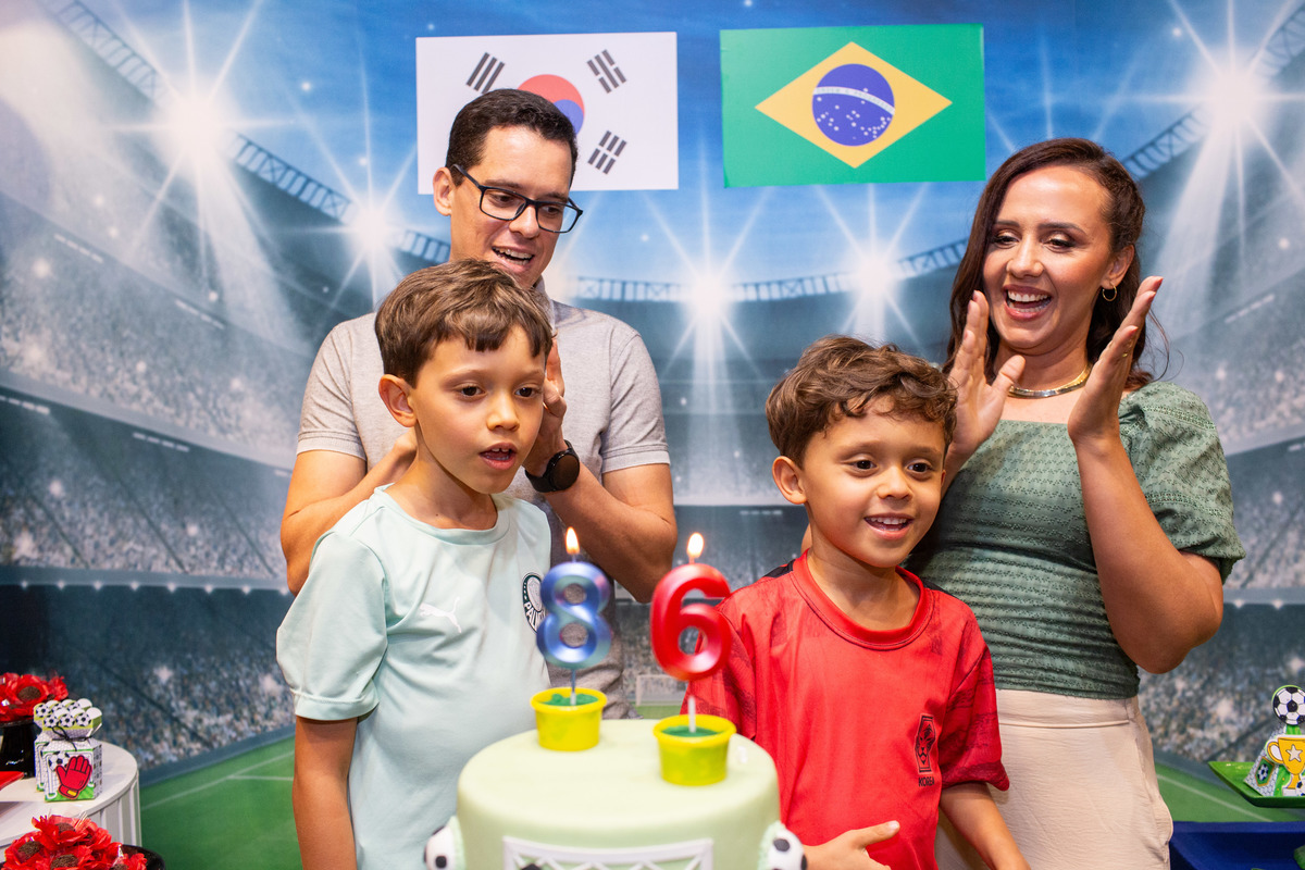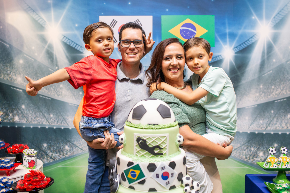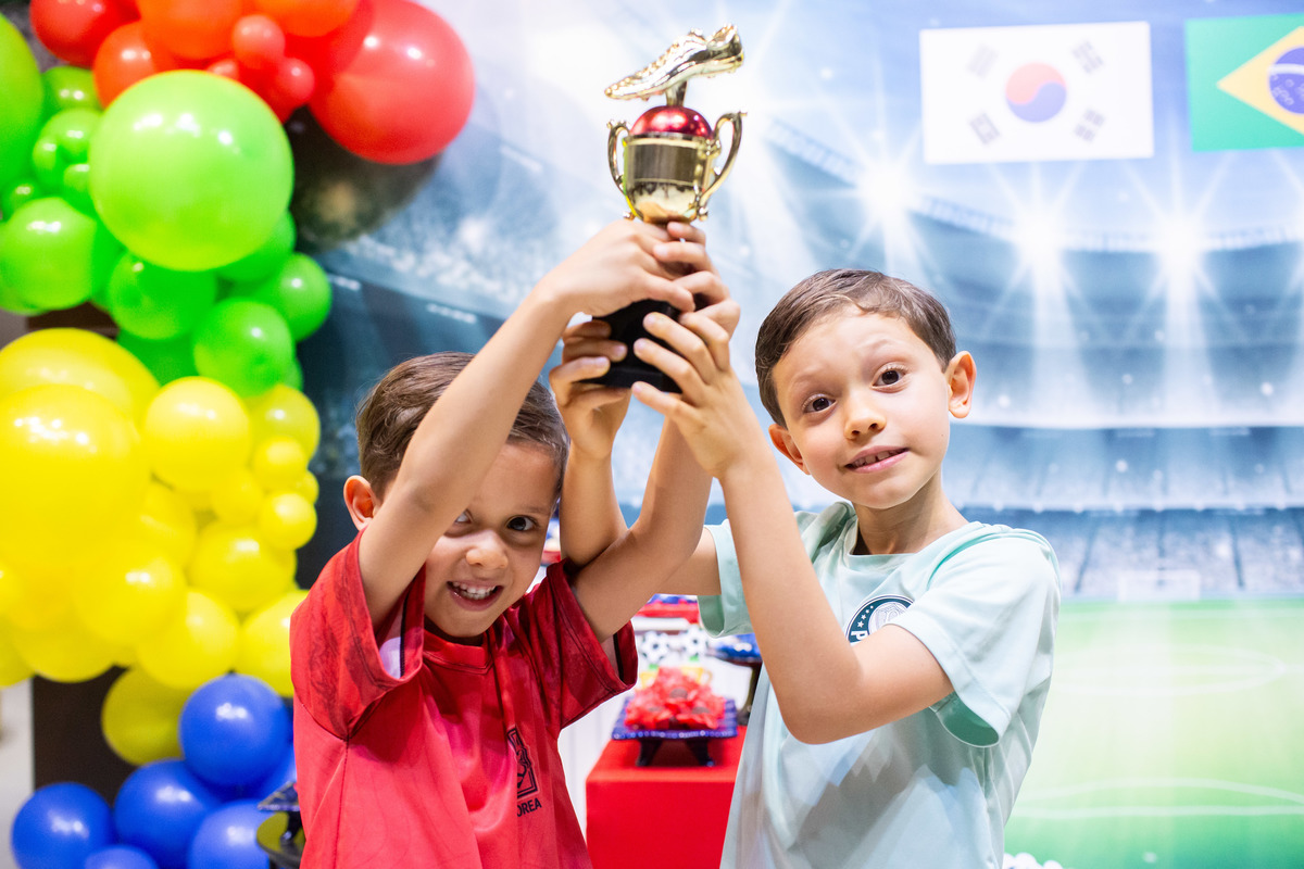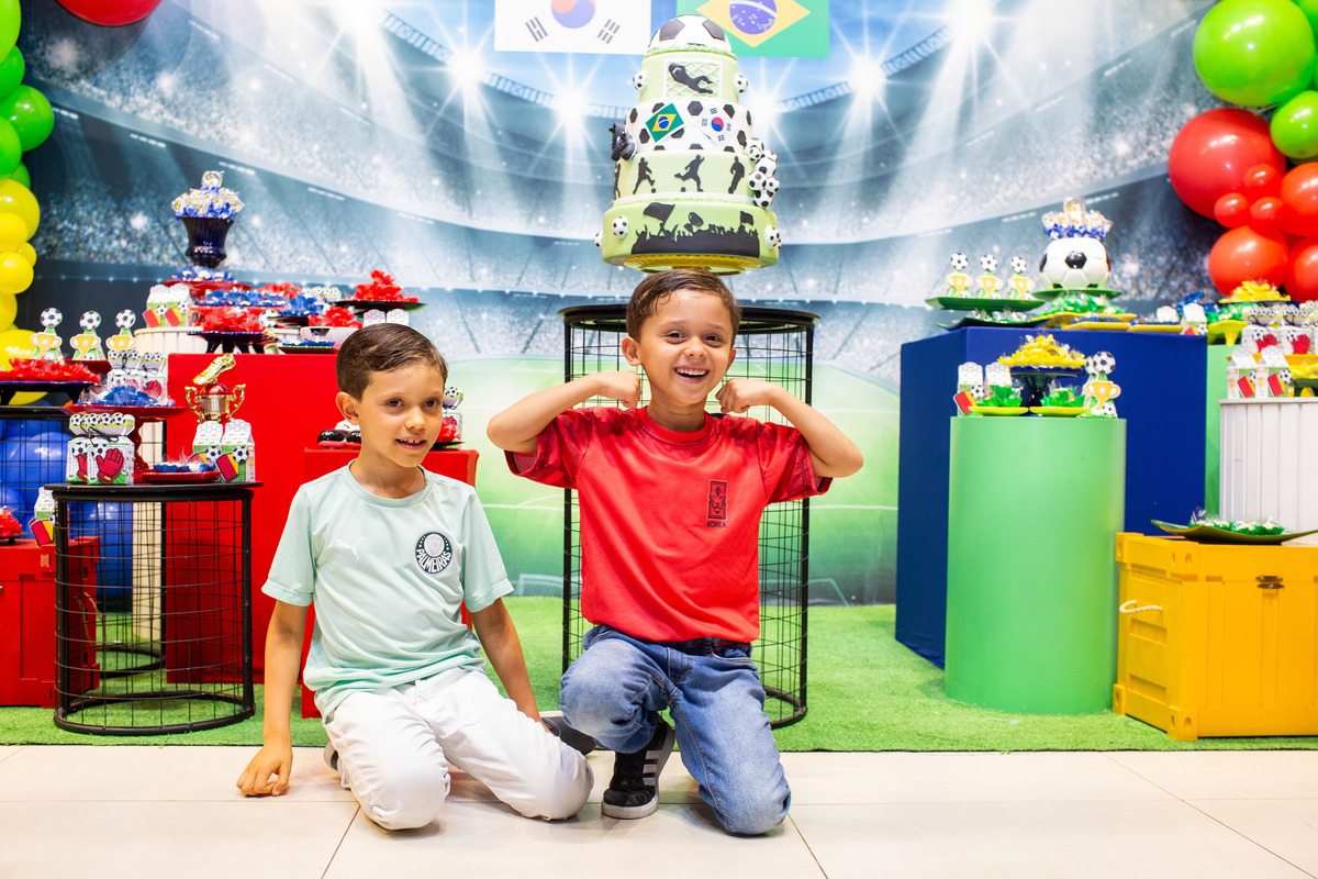 Os dois irmãos comemoraram seus aniversários de 8 e 6 anos em uma festa com tema de campeonato de futebol! Um dia de muita alegria onde amigos e familiares brincaram muito para celebrar a vida desses dois meninos tão gentis e doces! Foi uma alegria celebrar com vocês!