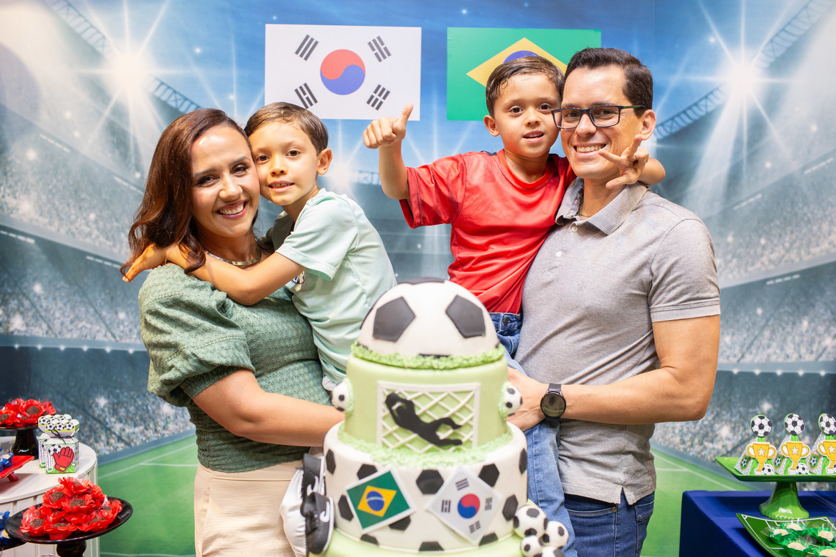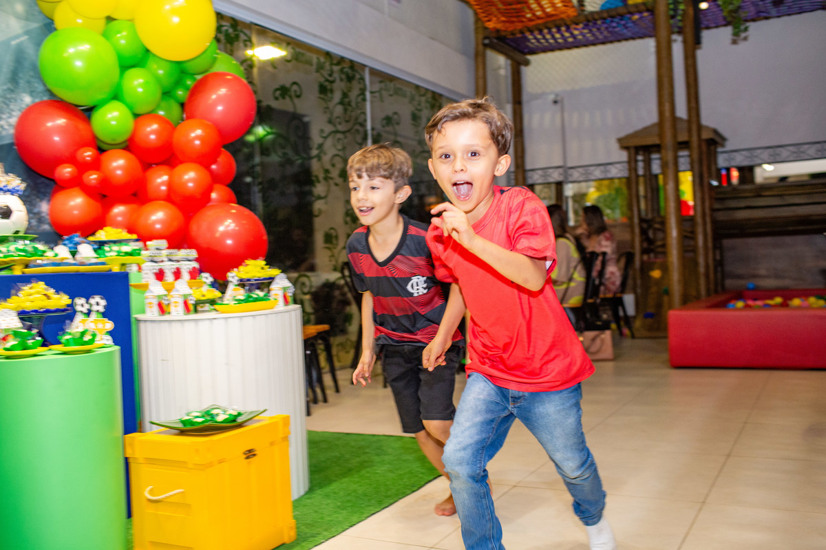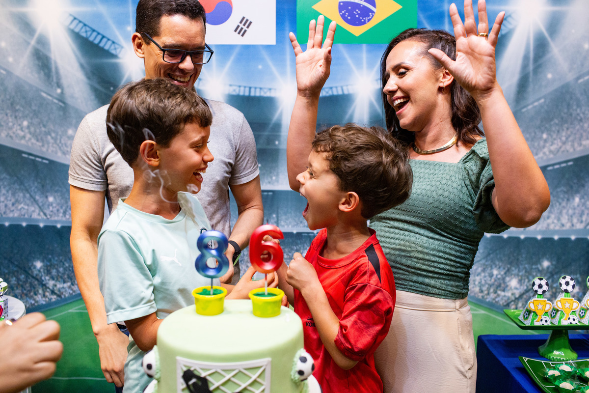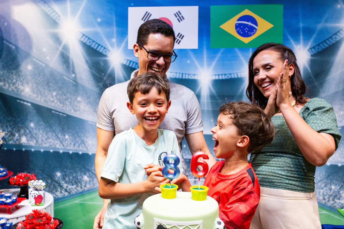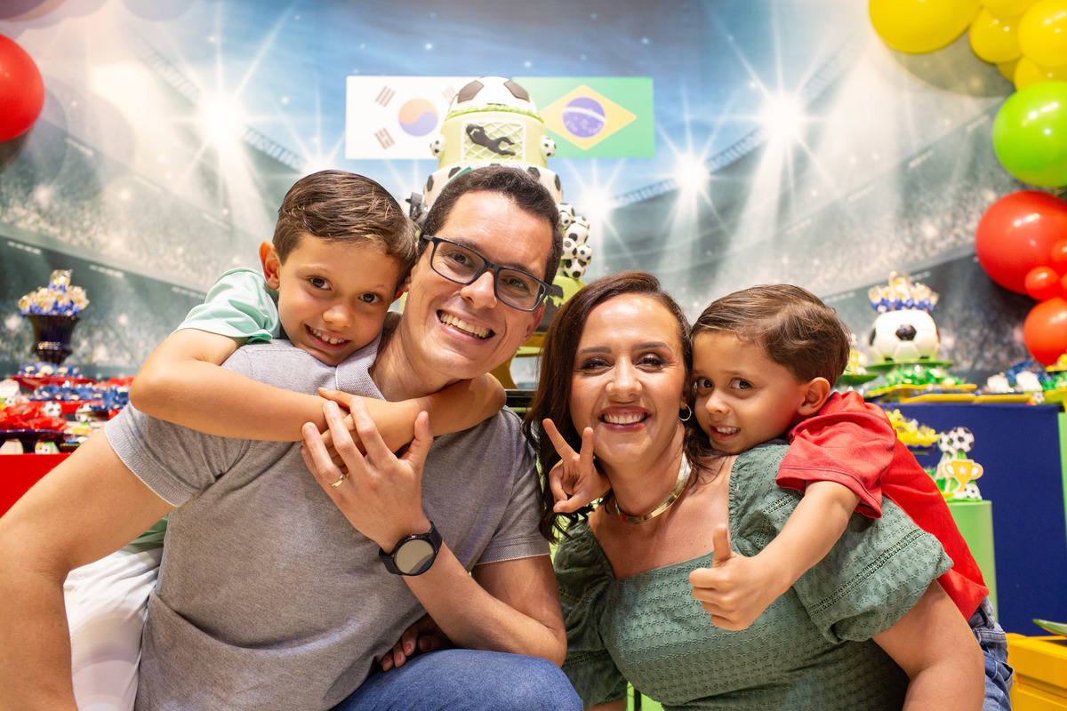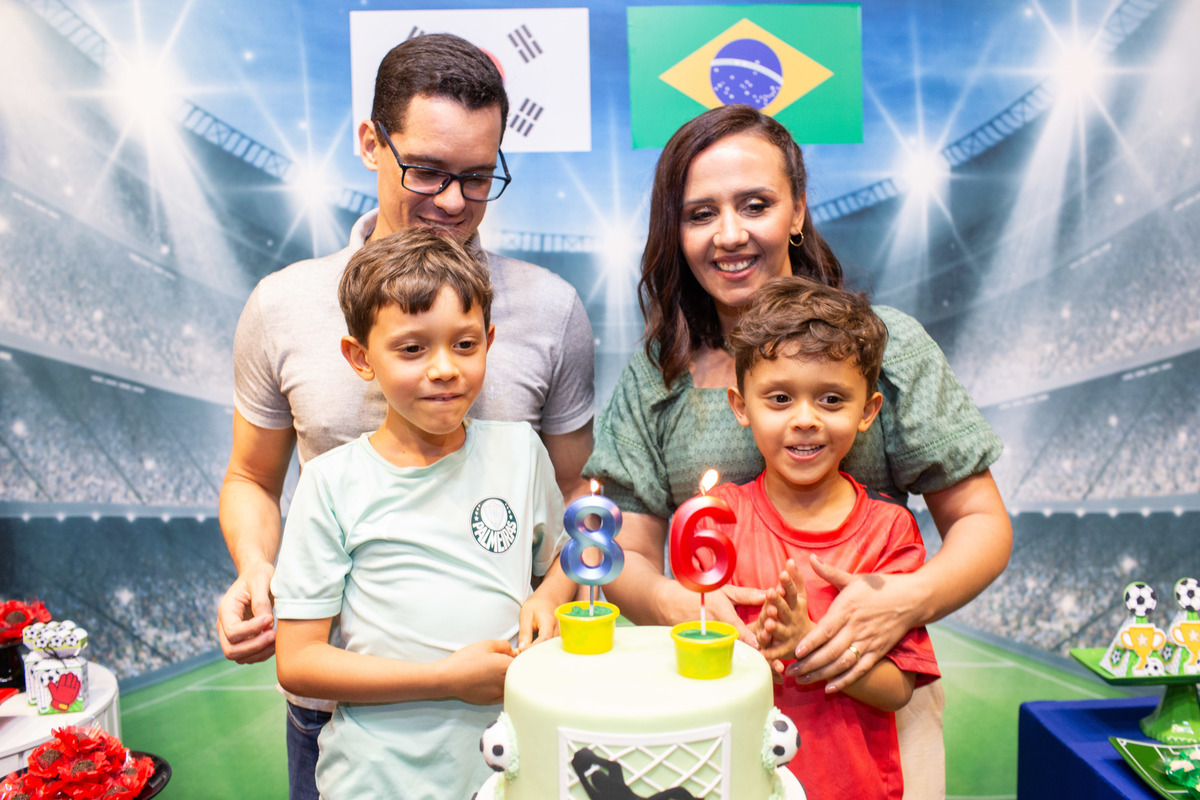 Os dois irmãos comemoraram seus aniversários de 8 e 6 anos em uma festa com tema de campeonato de futebol! Um dia de muita alegria onde amigos e familiares brincaram muito para celebrar a vida desses dois meninos tão gentis e doces! Foi uma alegria celebrar com vocês!