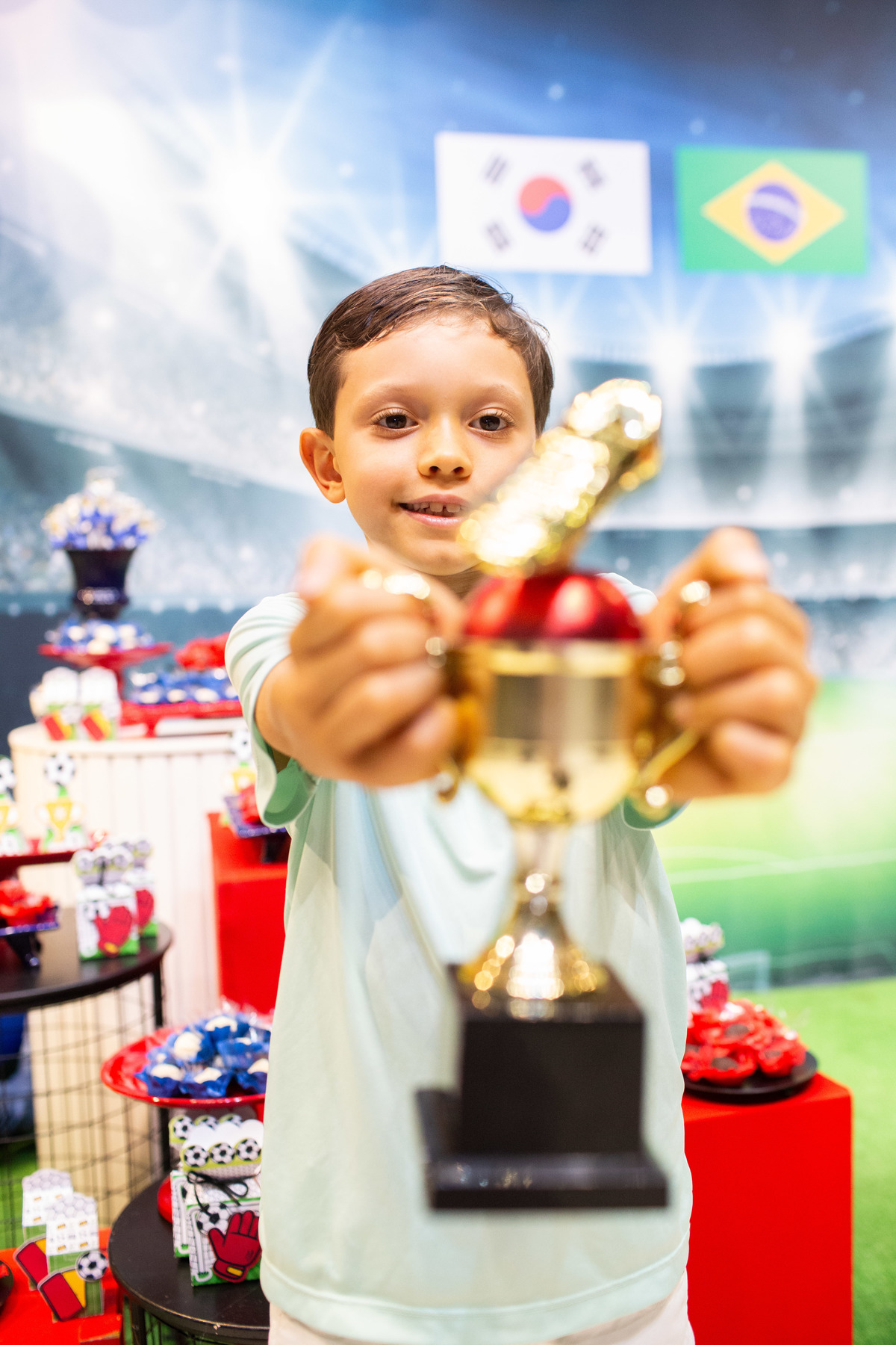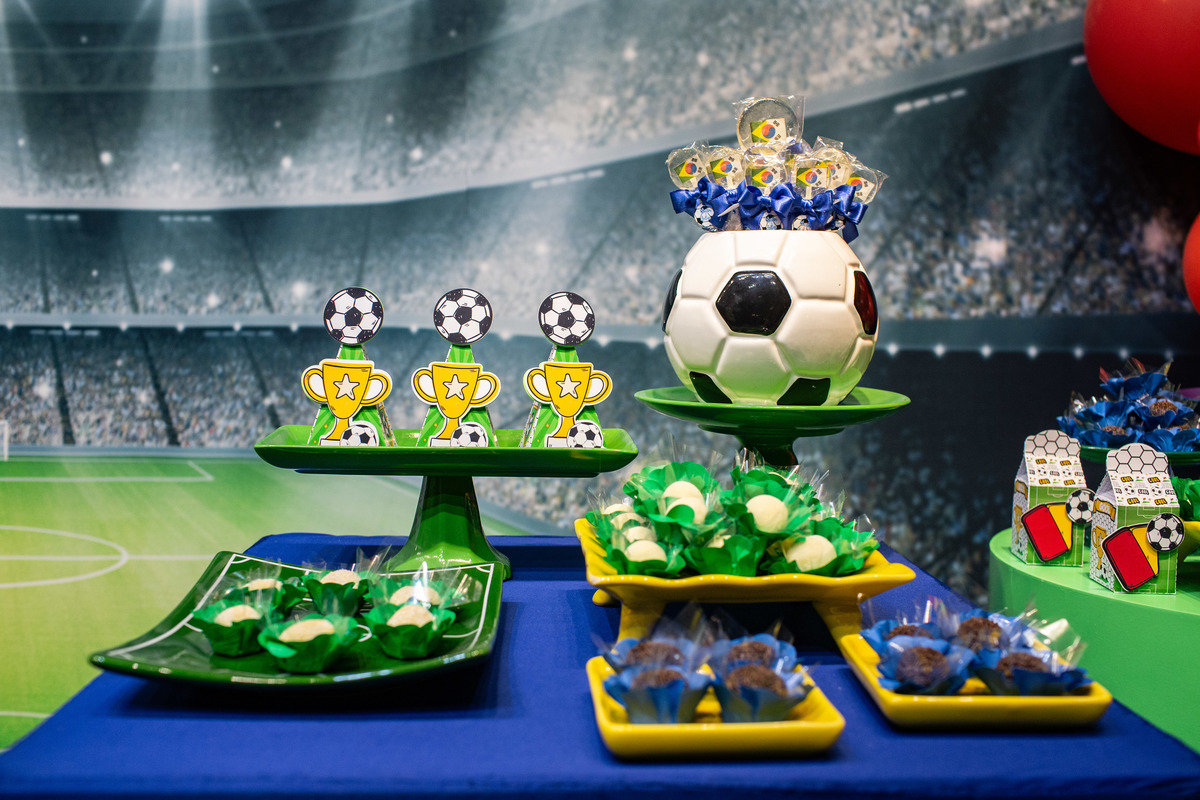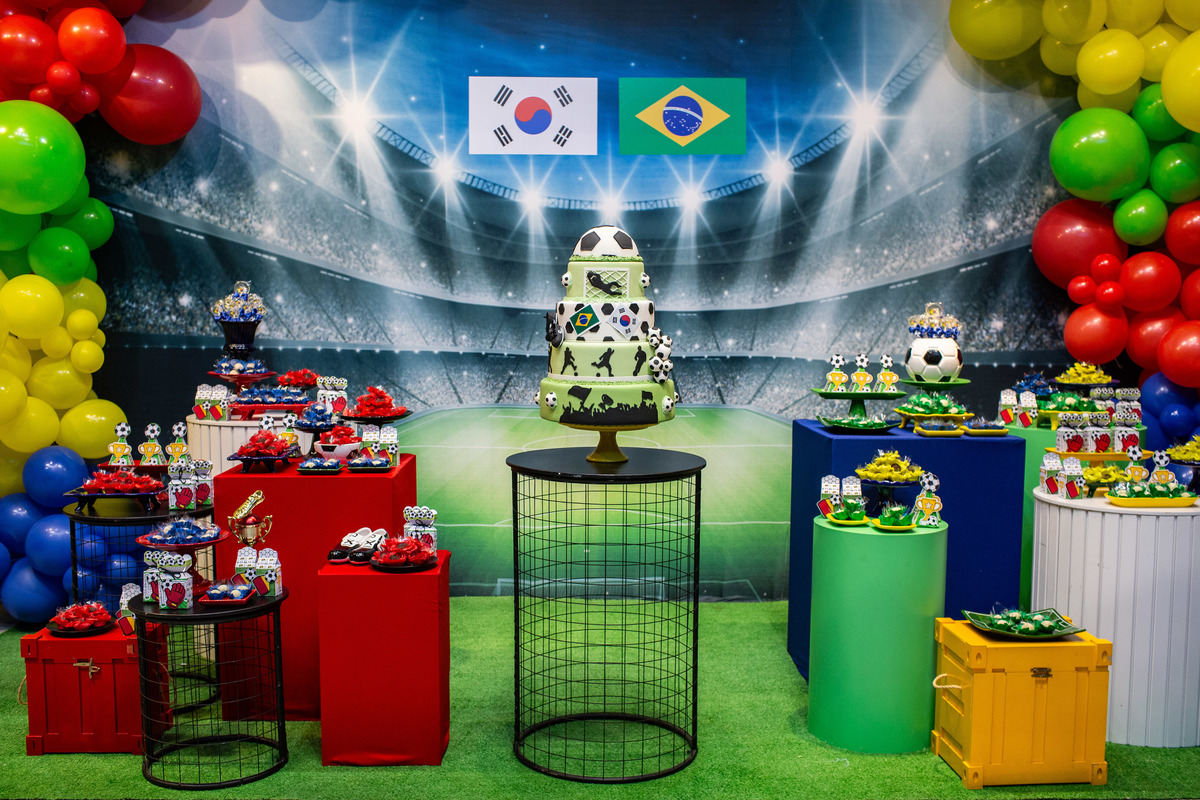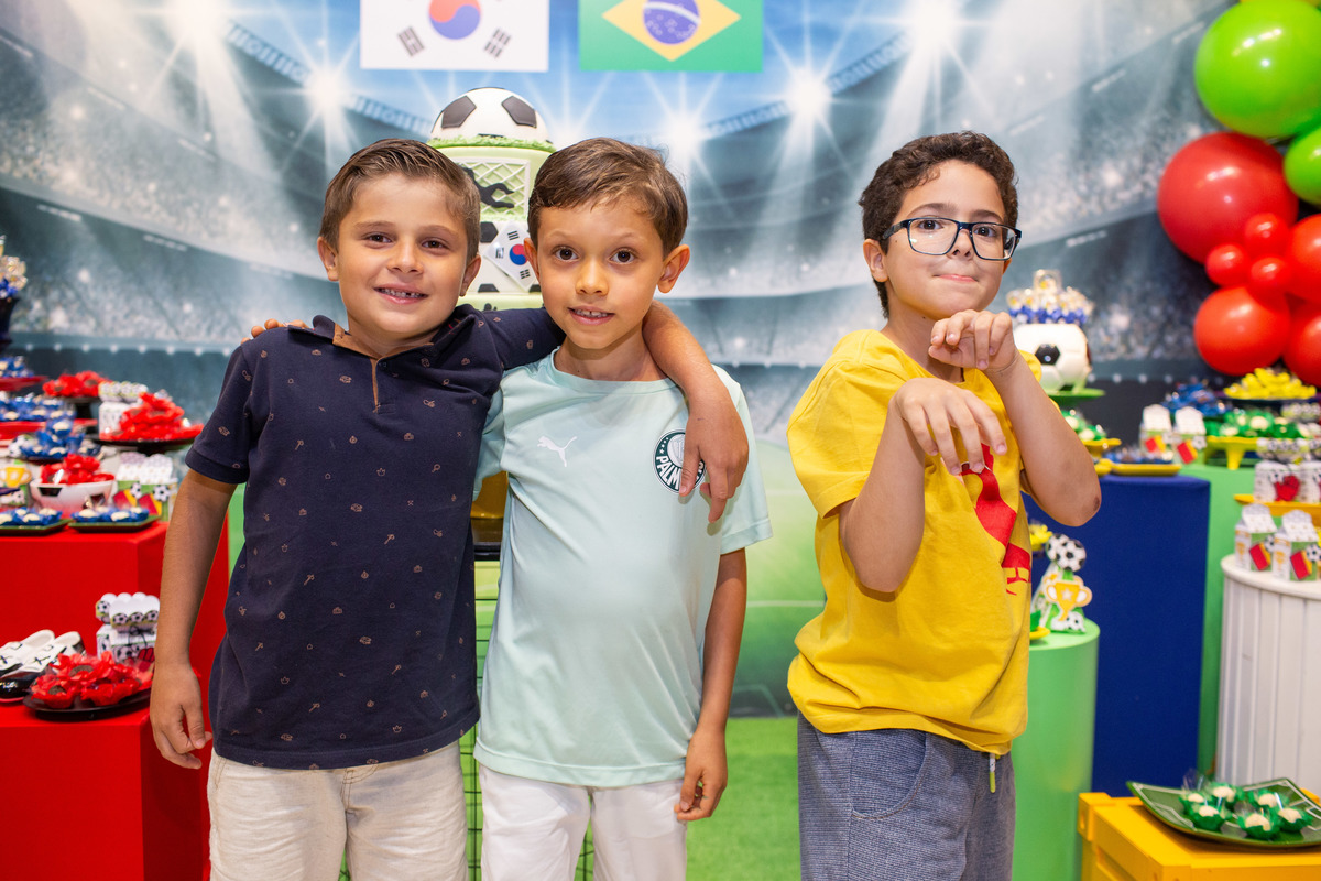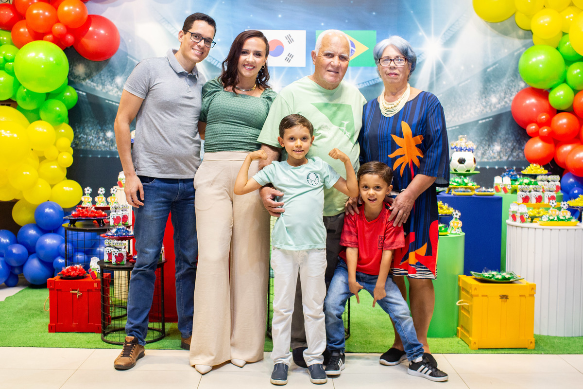 Os dois irmãos comemoraram seus aniversários de 8 e 6 anos em uma festa com tema de campeonato de futebol! Um dia de muita alegria onde amigos e familiares brincaram muito para celebrar a vida desses dois meninos tão gentis e doces! Foi uma alegria celebrar com vocês!